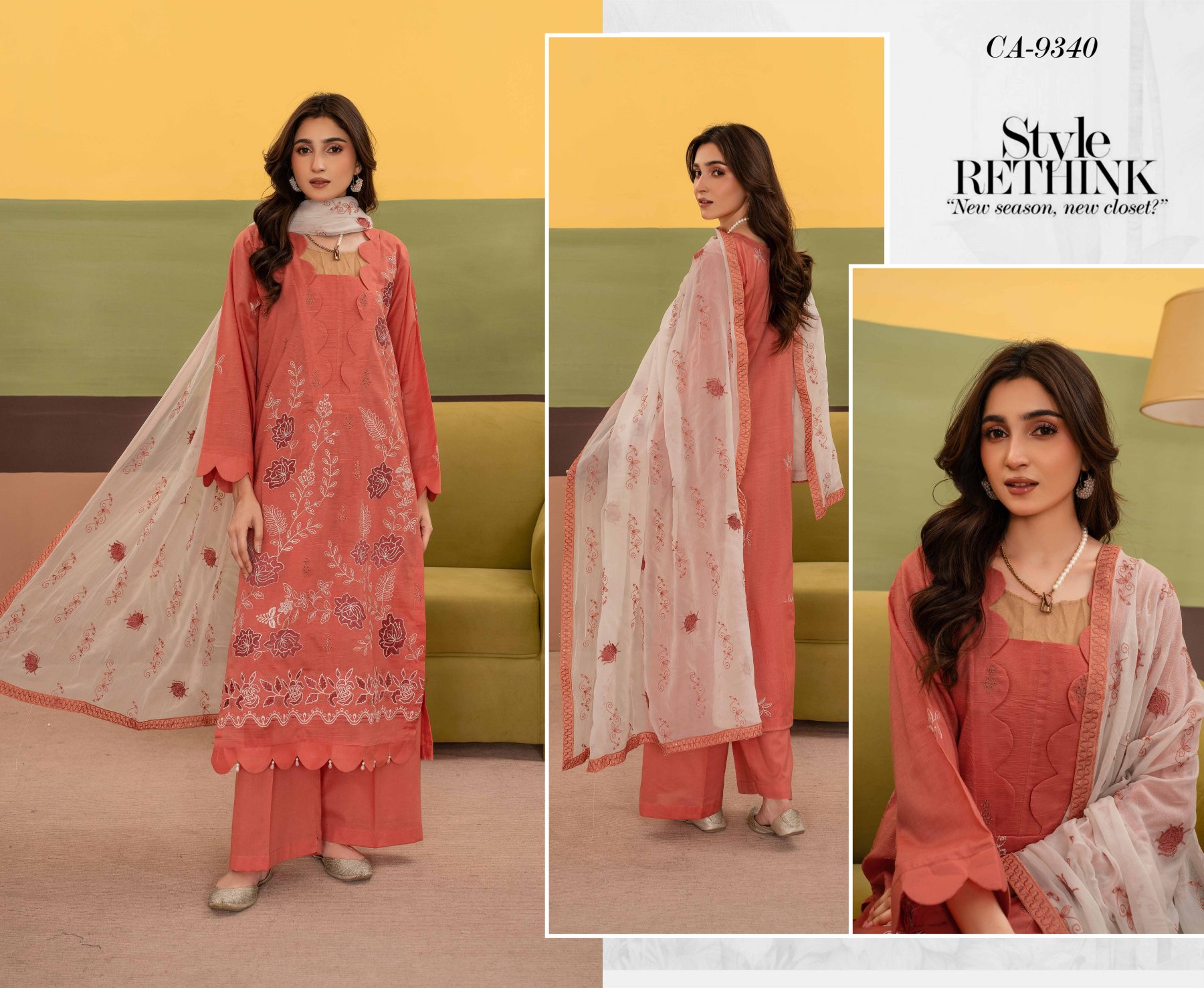 Premium dyed bana dora lawn embroidered shirt with bamber embroidered dupatta 4 sided lace same dyed trouser